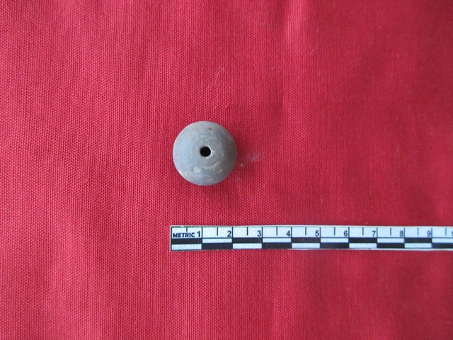 Terracotta Bead in globular shape. t is made of well-levigated clay, Black in colour. There is a hole in the centre