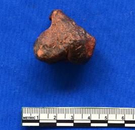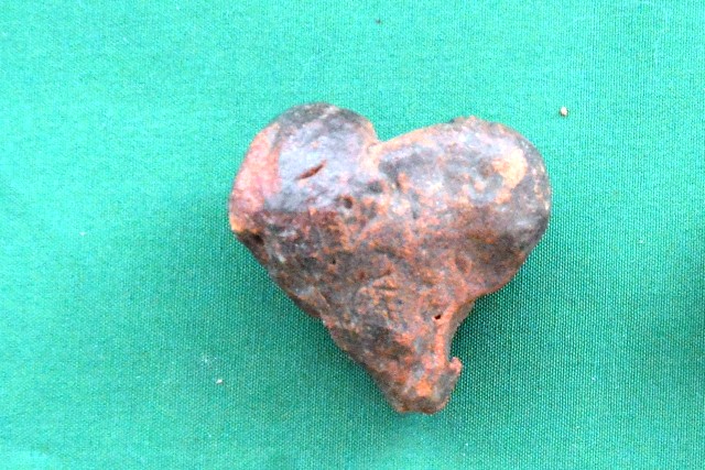 Terracotta indeterminate object, heart-shaped, polished surface, red in colour.