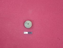 | Description / विवरण | Terracotta wheel made bead, it is in areca nut shape and it has depression on one end with a perforation. |
