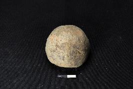 | Description / विवरण | A half-broken terracotta sling ball, it has round shape and rough surface. The colour of the object is grey. |