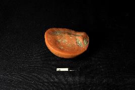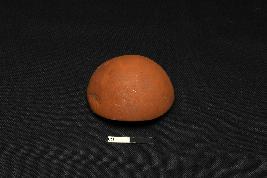 | Description / विवरण | A half broken terracotta sling ball, it has smooth surface. The colour of the object is red. |