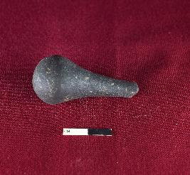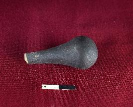 | Description / विवरण | A handmade terracotta stopper made with fine clay having broken tip and round base. The surface of the object is smooth and black in colour. |