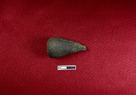 | Description / विवरण | A handmade terracotta stopper made with fine clay having broken tip and almost flatted base. The surface of the object is smooth and black in colour. |