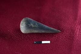 | Description / विवरण | A handmade terracotta stopper made with fine clay having pointed tip and semi-rounded base. The surface of the object is smooth and black in colour. |