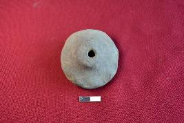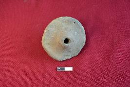 | Description / विवरण | A terracotta handmade wheel of a toy cart, it is thicker in the middle with a hole. The surface of the object is rough. |