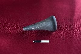 | Description / विवरण | A Terracotta stopper black in colour having flatted base, broken tip, smooth surface and well baked clay was used. |