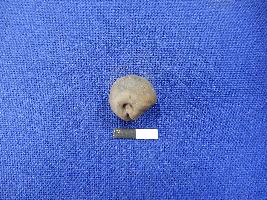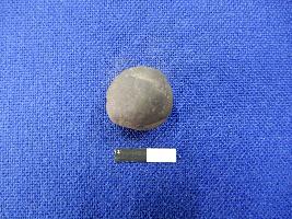 | Description / विवरण | A terracotta sling ball almost round in shape, with a depression on the surface. The colour of the object is black. |