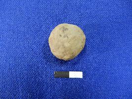 | Description / विवरण | A terracotta sling ball, it is round in shape and smooth surface. The colour of the object is grey. |