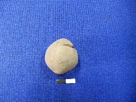 | Description / विवरण | Terracotta sling ball round in shape having rough surface. The colour of the object is grey. There is a depression on the surface of the object. |