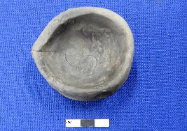 | Description / विवरण | Terracotta lamp, it is circular in shape and rim is straight featureless. It has intact wick and slip treatment given in black colour. |