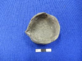 | Description / विवरण | Terracotta lamp, it is circular in shape with intact wick. It has straight featureless rim and slip treatment given in black colour. |
