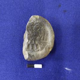 | Description / विवरण | A terracotta sealing, representing a peacock type bird placed on a stand. The colour of the object is black. |