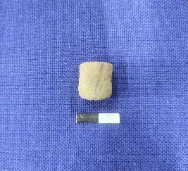 | Description / विवरण | Terracotta gamesman, it is almost cylindrical in shape with tapering in central portion. The colour of the object is grey and it has smooth surface. |