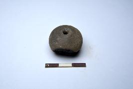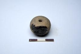 | Description / विवरण | Terracotta bead, it is areca nut in shape and surface treated with chocolate slip. The bead is centrally perforated and circular cross section. |