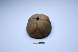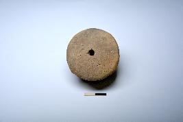 | Description / विवरण | Terracotta wheel made bead, it is in hemi spherical shape with four petal shapes on surface. |