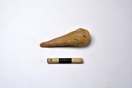 | Description / विवरण | A handmade terracotta stopper made with fine clay having pointed tip and rounded base. The surface of the object is smooth and orange in colour. |