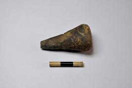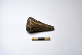 | Description / विवरण | A handmade terracotta stopper made with fine clay having broken tip and flat base. The surface of the object is smooth. |