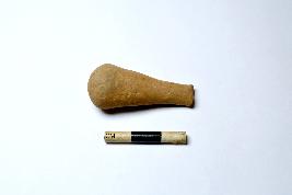 | Description / विवरण | A handmade terracotta stopper made with fine clay having broken tip and rounded base. The surface of the object is smooth. |