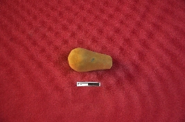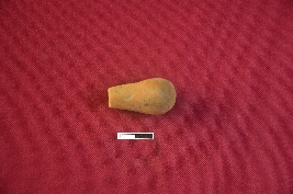 | Description / विवरण | A handmade terracotta stopper made with fine clay having broken tip and rounded base. The surface of the object is rough and colour is red. |
