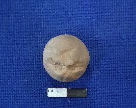 | Description / विवरण | A terracotta sling ball, it is round in shape with smooth surface. The colour of the object is red. |