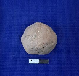 | Description / विवरण | Terracotta sling ball, almost round in shape and hard baked. The colour of the object is red, well fired and smooth in texture. |