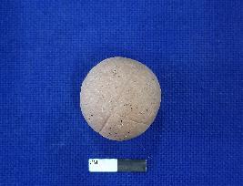 | Description / विवरण | Terracotta sling ball with decorative incised criss cross lines on its body. It is red in colour with smooth surface. |