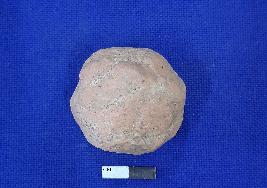 | Description / विवरण | Terracotta ball, almost round in shape. The colour of the object is red, well fired and partly smooth in texture. |