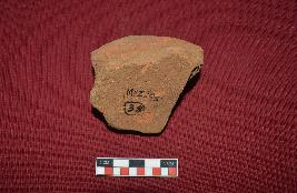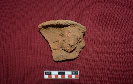 | Description / विवरण | Fragmentary plaque with a human bust with a slightly curved hood in brick brown color. The face is almost oval in shape, elongated eyes and mouth are almost lost nose is thick. The right ear is shown with ear hole and an elongated ear lobe which is touching the shoulder, while the left one is broken. |