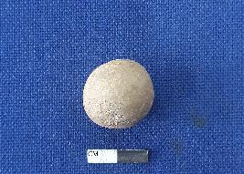 | Description / विवरण | A terracotta sling ball, it is round in shape and has smooth surface. The colour of the object is grey. |