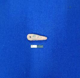| Description / विवरण | Handmade terracotta pendant having a hole on top, semi pointed base and wash treatment is in buff colour. The surface of the object is rough. |