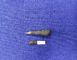 | Description / विवरण | A handmade terracotta stopper made with fine clay having broken tip and semi rounded base. The surface of the object is smooth and black in colour. |