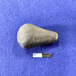 | Description / विवरण | Stopper, bigger in dimension and blackish grey in colour. Its tip end is broken and other end is bulbous in shape. |