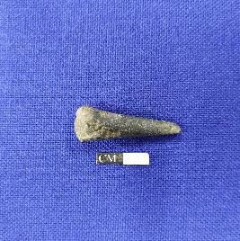 | Description / विवरण | A handmade terracotta stopper made with fine clay having chipped off surface. It has pointed tip and flatted base. Surface treated with black slip. |