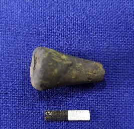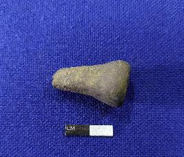 | Description / विवरण | A handmade terracotta stopper made with fine clay having broken tip and semi-rounded base. The surface of the object is smooth and black in colour. |