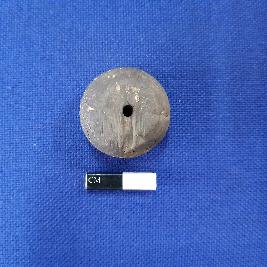 | Description / विवरण | Terracotta bead, it is areca nut in shape and surface treated with chocolate slip. The bead is centrally perforated and it has circular cross section. |