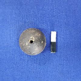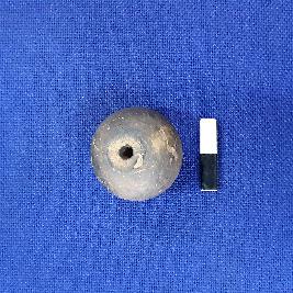 | Description / विवरण | Terracotta bead in spherical shape, central depression on end with a perforation, surface treated with black slip. There are some irregular marks are visible on the surface. |