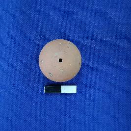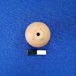 | Description / विवरण | Terracotta wheel made bead in spherical shape, concentric lines, central depression on end with a perforation, surface treated with red slip. |