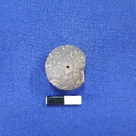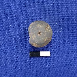 | Description / विवरण | A broken terracotta bead spherical in shape, surface treated with black slip. There are some irregular marks are visible on the surface. |