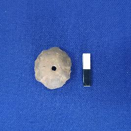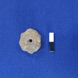 | Description / विवरण | A specimen of terracotta bead, it is black in colour. The bead is centrally perforated and has rough surface. The shape of the bead is semi-hemispherical, and it has jagged edge. |