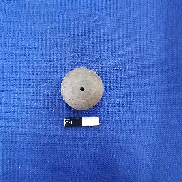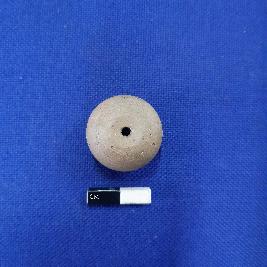 | Description / विवरण | Terracotta wheel made bead in areca nut shape, it has central depression on end with a perforation. The object is red colour. |