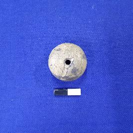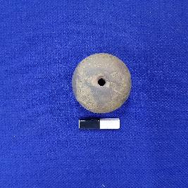 | Description / विवरण | Terracotta bead in spherical shape, central depression on end with a perforation, surface treated with black slip. |