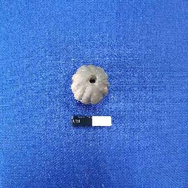 | Description / विवरण | Terracotta wheel made bead in almost spherical shape, vertical grooving on its body, flat base, hollow in nature, surface treated with black slip and perforated in one side. Probably this is an unfinished bead. |