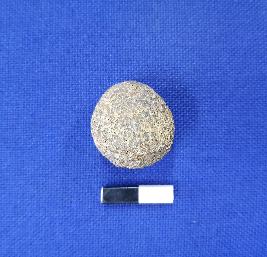 | Description / विवरण | A terracotta ball round in shape having rough surface. It has some irregular marks on it. The colour of the object is black. |