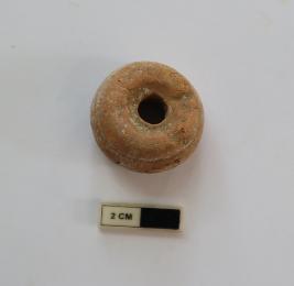 | Description / विवरण | Bead in Ghat shape. one end portion is flat. Some portion is damaged. it is red in color |