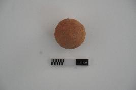 | Description / विवरण | Sling ball of spherical shape. it is red in color. Some portion is damaged |