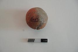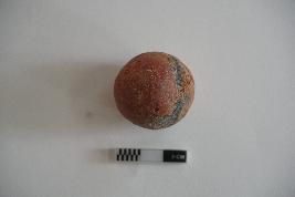 | Description / विवरण | Sling ball is spherical in shape. Some surface portion is partially damaged. It is red in colour |