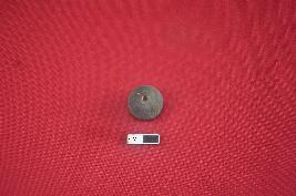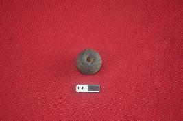 | Description / विवरण | Terracotta wheel made bead, it is areca nut in shape, central depression on one end with a perforation, surface treated with chocolate slip. |