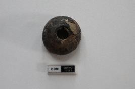 | Description / विवरण | Bead of ghat shape. Some portion is damaged. One end portion is flat. It is black in Color |