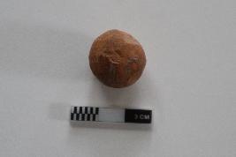 | Description / विवरण | Sling ball is spherical in shape. Some portion is partially damaged. It is red in colour |