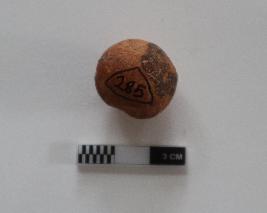 | Description / विवरण | Sling ball is spherical in shape. Some portion is damaged. It is red in colour |